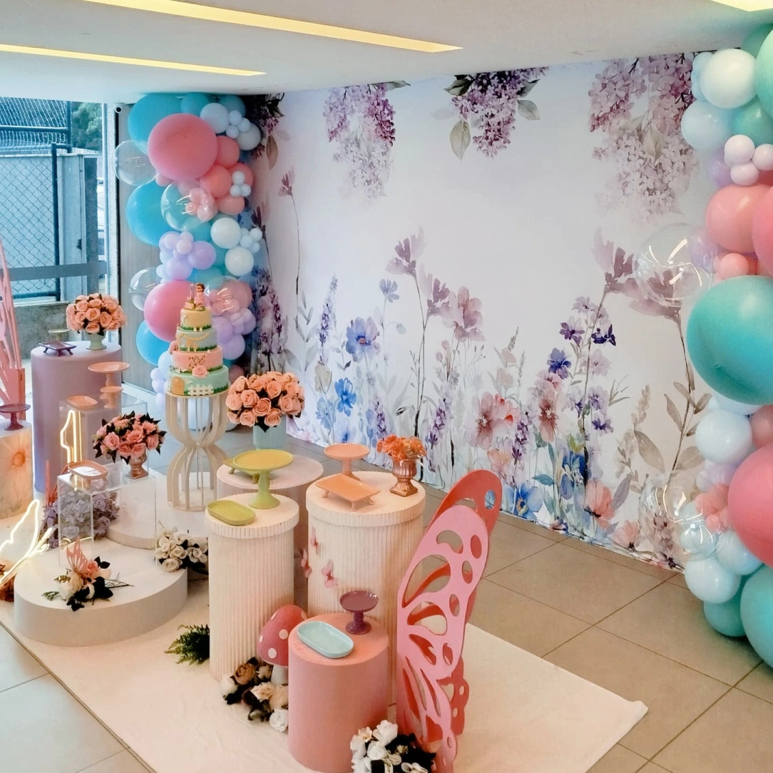Desenvolvemos um projeto exclusivo de acordo com o tema, cores e estilo desejados, utilizando painéis, peças decorativas, cenários e mobiliário. No dia do evento, entregamos sua festa totalmente pronta, organizada e harmonizada, para que você aproveite sem preocupações.